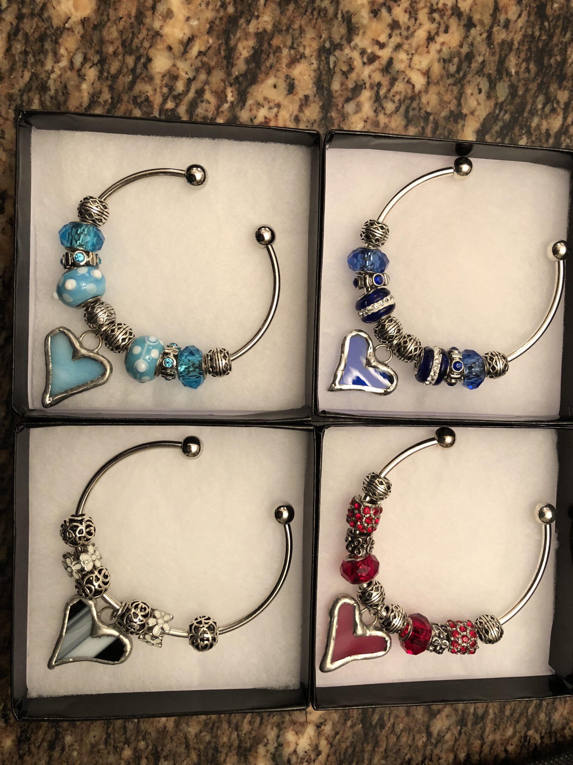 These beautiful hand-crafted bracelets are sure to impress with a beautiful stained glass heart as the the centerpiece.